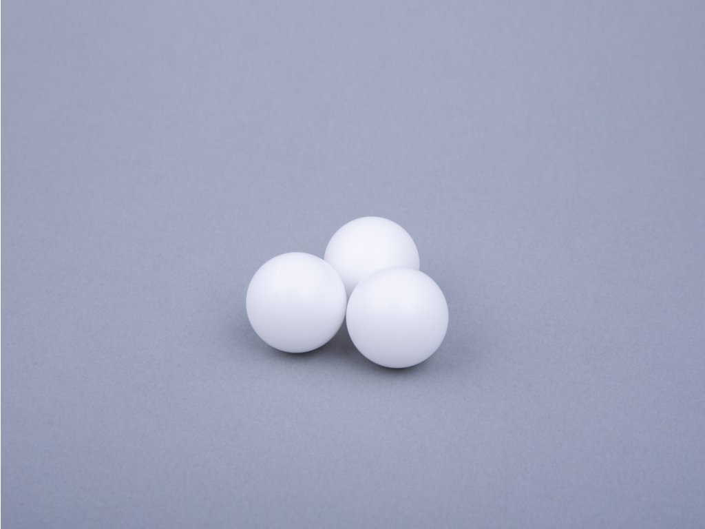 Kuličky z materiálu Teflon poskytují výjimečnou odolnost proti korozi a používají se ve vysokoteplotních aplikacích a jsou lehké. Mechanické vlastnosti a odolnost vůči opotřebení jsou nižší než u jiných plastových materiálů. Jsou dobrými elektrickými izolátory Tvrdost: 60 Shore Použití: kuličková ložiska, speciální ventily, měřící a lékařské přístrojeDoplňkové parametry